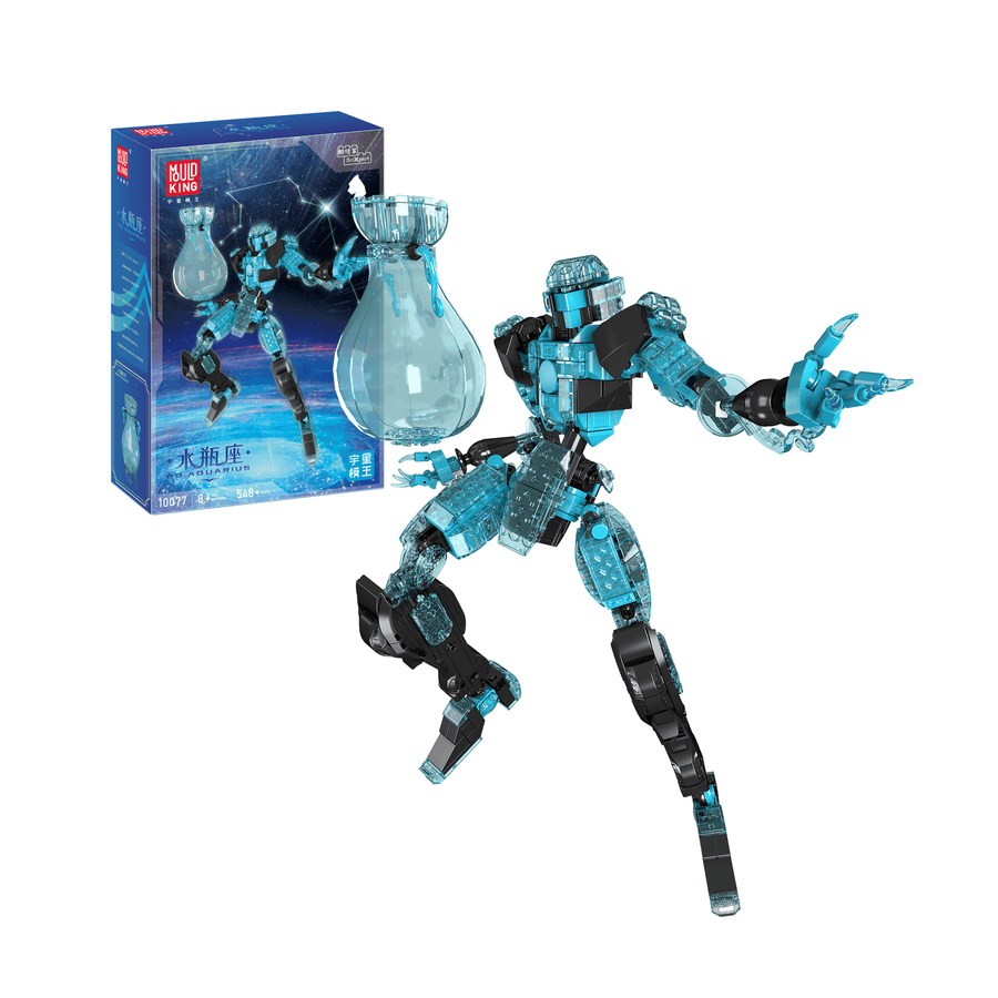 Presenting the Mould King 10077 Aquarius set of the Zodiac series of building blocks. This innovative set brings the water-bearing Aquarius constellation to life through a meticulously crafted poseable figure. The model is designed to reflect the unique characteristics of the Aquarius zodiac, featuring a dynamic color scheme that echoes the fluidity and serenity of water with its vibrant, translucent blue parts.
