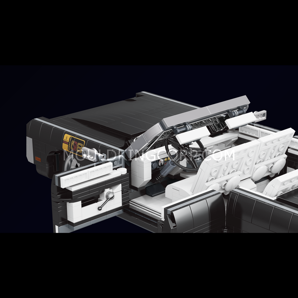 This retro car model is made up of 1903 pieces. It features a classic design with sleek black body panels and a convertible roof that can be removed.