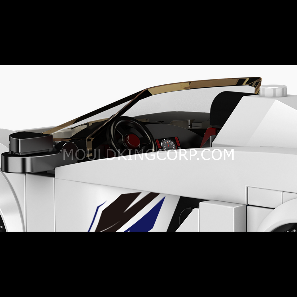 The Mould King® British 650S car model is created with 352 pieces and suit for ages 8 and up. The car model features a streamlined body and transparent windshield, exhaust-pipe, tail wing, opening doors, a steering wheel, and sport seats.