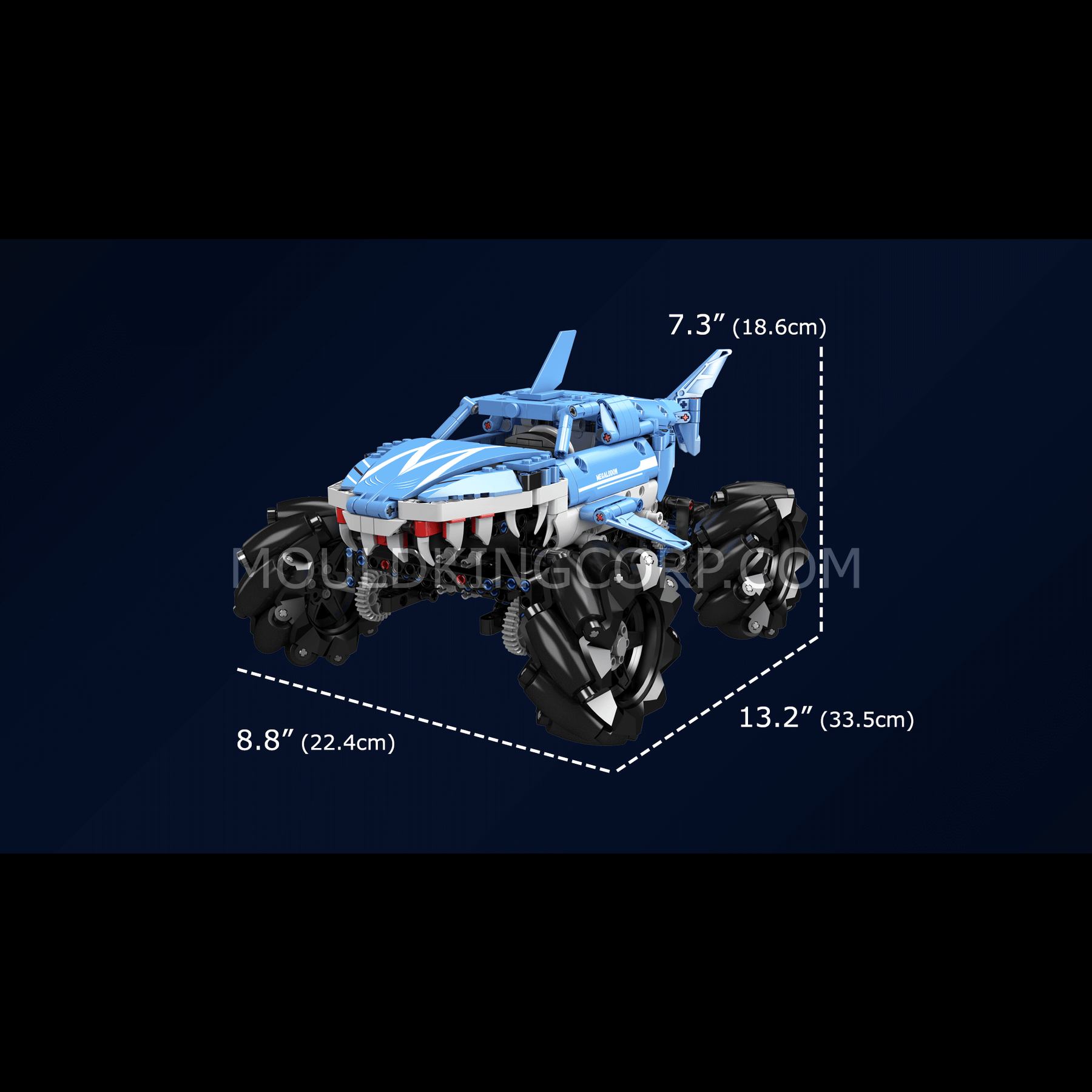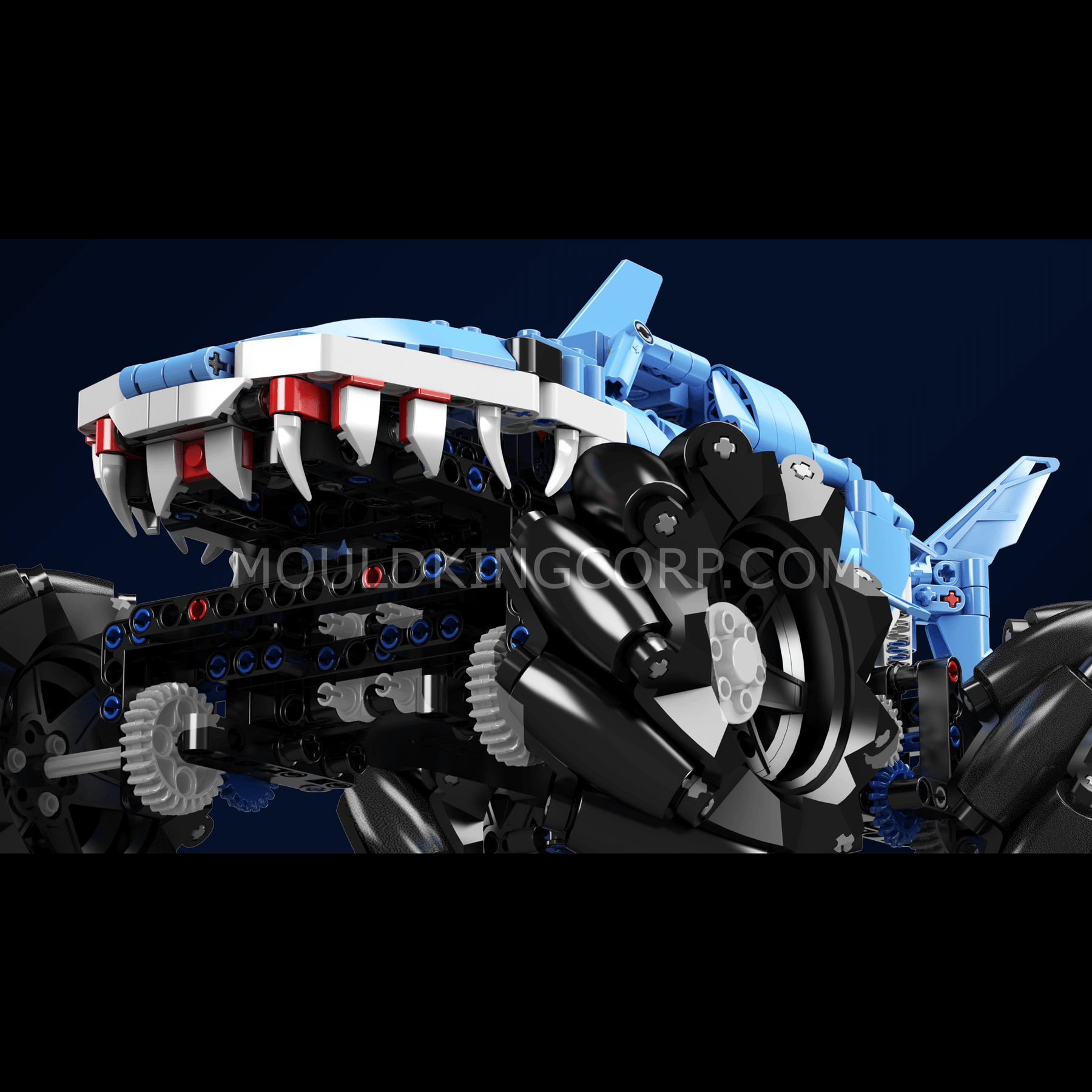 Assemble and Unleash the beast with its massive, versatile wheels and shark-inspired design that promises an eye-catching look and dynamic performance. Adjust its fearsome fins to tackle obstacles and enhance its predatory shape.