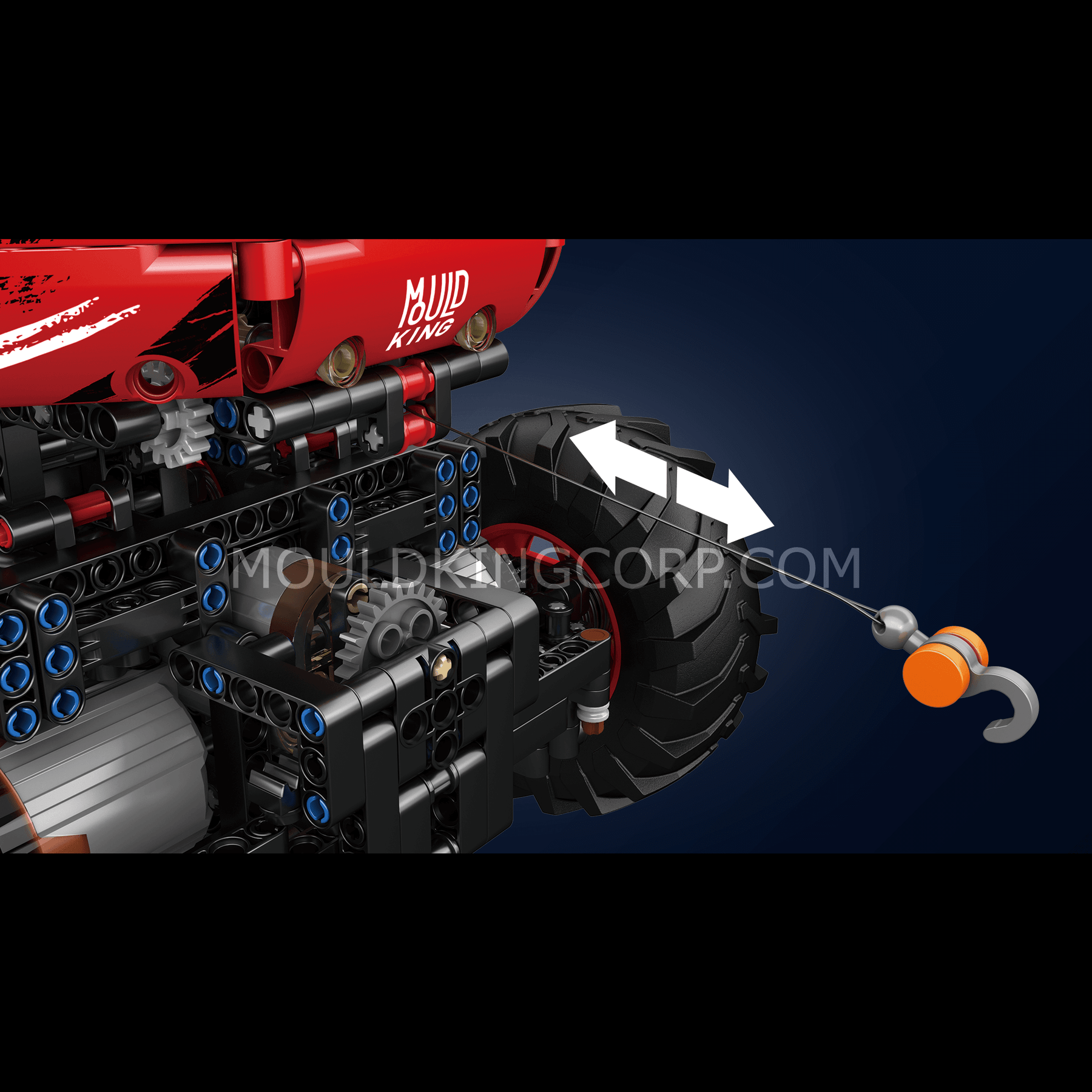 You can control the forward, backward and driving of the vehicle through the remote control. Eight pieces of XL size motors drive 8 car tires respectively. And a retractable hook on the front are drived by a M size motor.