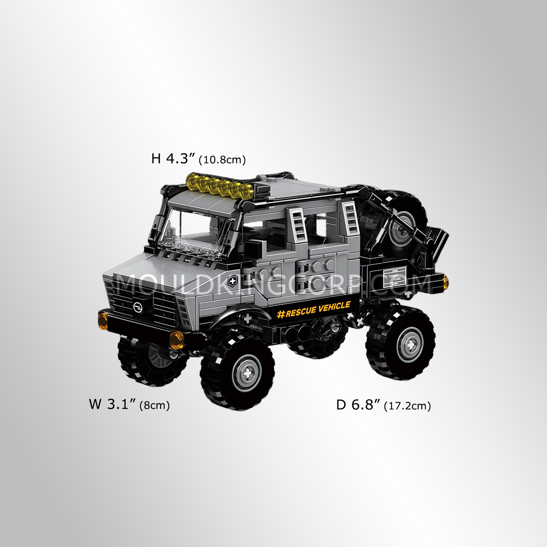 Dieses Mini World Rescue Vehicle ist von realen, extremen Offroad-Rettungsfahrzeugen inspiriert, die für schwieriges Gelände und kritische Einsätze gebaut wurden.