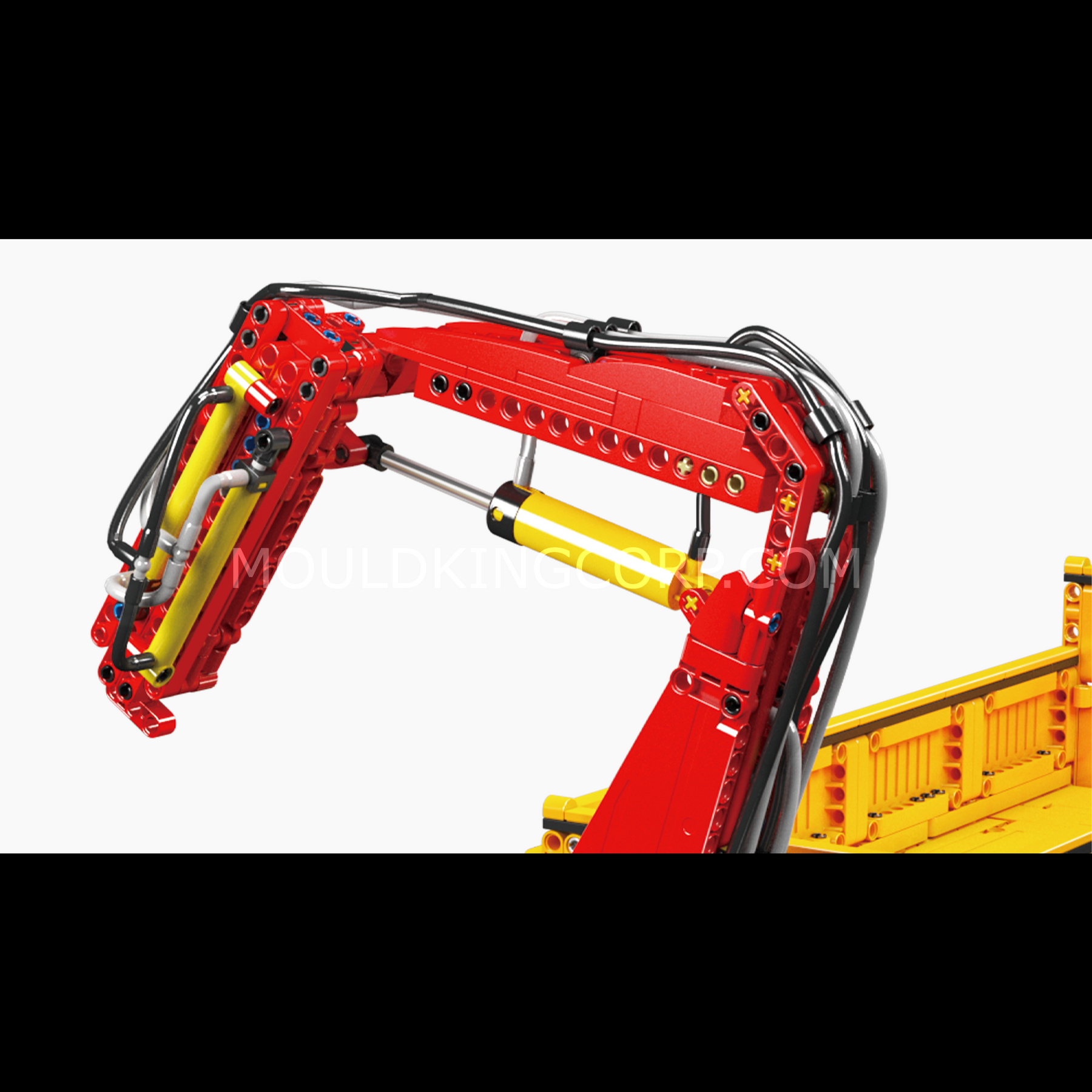 Jedes Detail, von der aufwendig gestalteten Kabine bis hin zu den leistungsstarken pneumatischen Zubehörteilen, sorgt für ein realistisches und spannendes Montageerlebnis. Der Knickarmkran ist vollständig steuerbar, sodass Sie seine kippbare Mulde mit fortschrittlicher Elektronik und pneumatischen Komponenten anheben, absenken, ausfahren und steuern können.