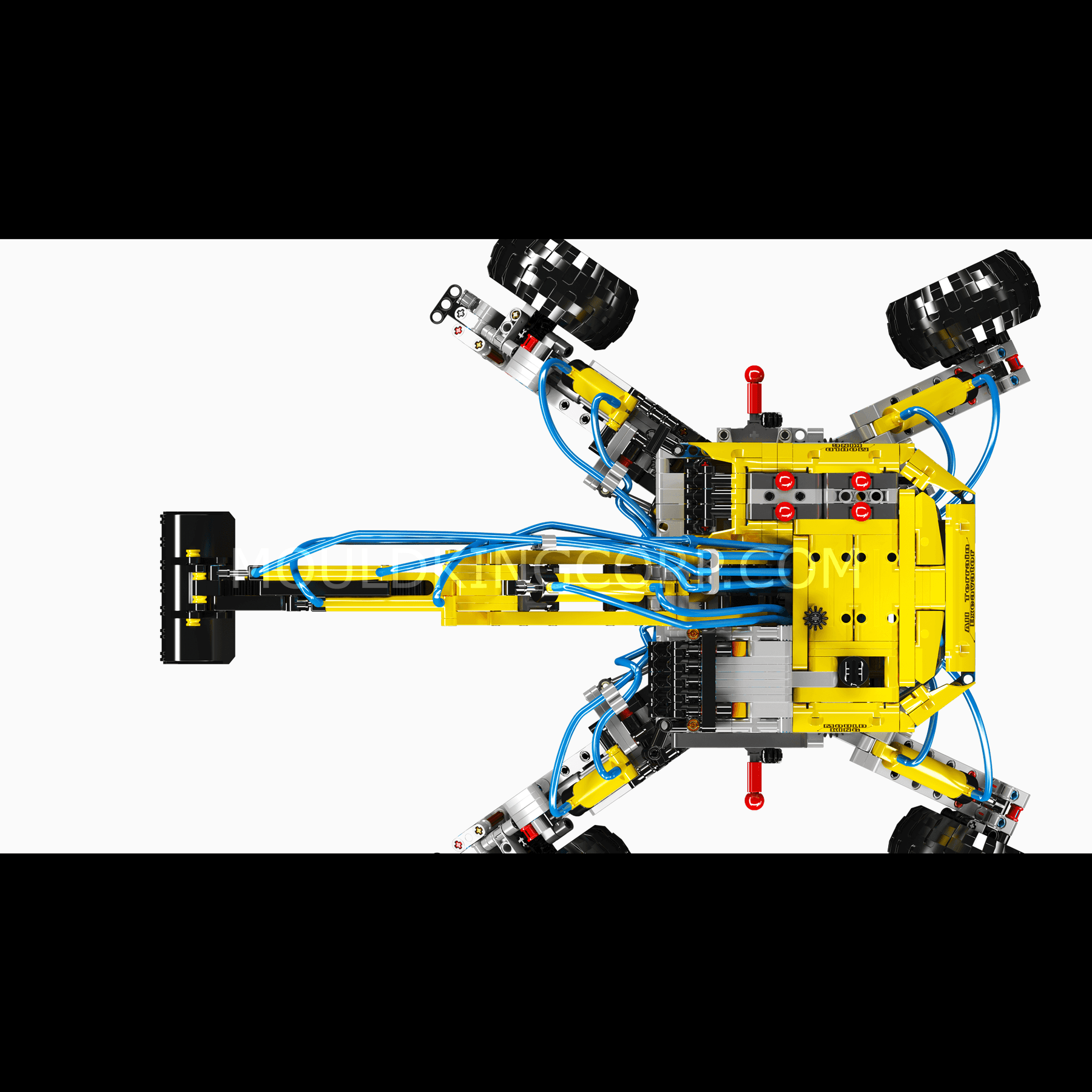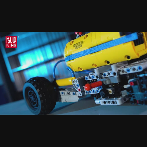 Dieses Modell verfügt außerdem über zwei pneumatische Ventile am Fahrgestell, die eine präzise Steuerung der seitlichen und vertikalen Bewegung der Stützbeine ermöglichen. Benutzer können mit dem Modell interagieren, indem sie mit der Luftpumpe die Bewegungen des kleinen Arms und der Schaufel sowie das Anheben und Ausfahren des großen Arms steuern. Dieses interaktive Design demonstriert nicht nur die technologische Leistungsfähigkeit von Mould King, sondern bietet auch ein spannendes und lehrreiches Bauerlebnis für alle Altersgruppen.