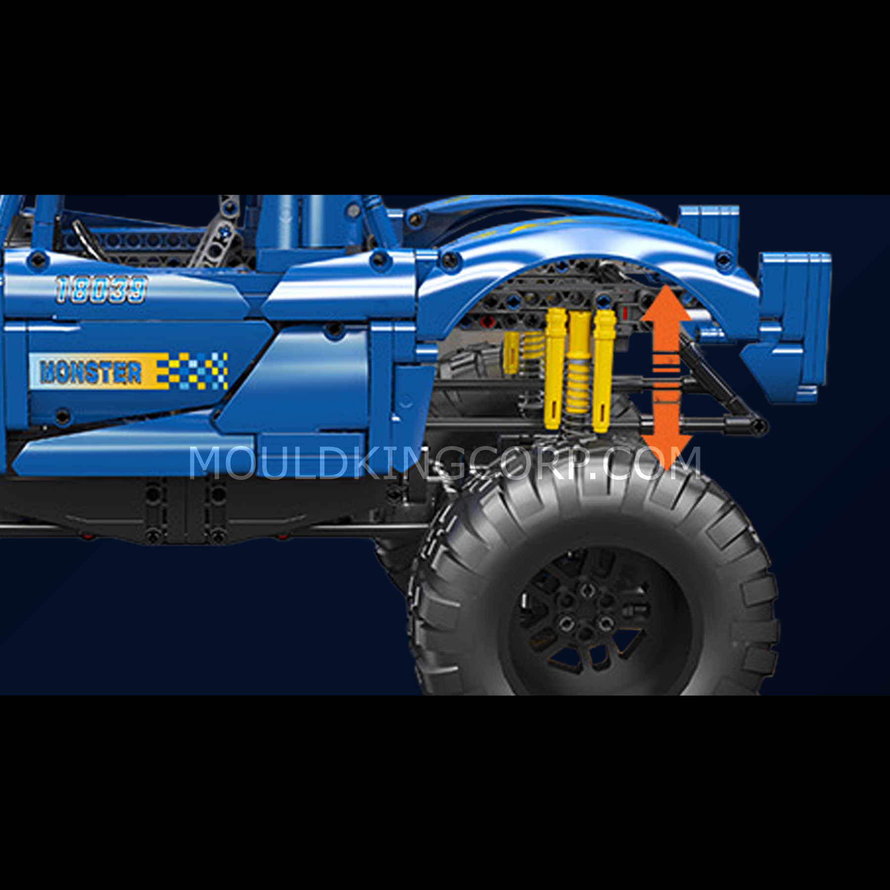 Mould King 18039 est un ensemble de construction de monster truck haute performance composé de 1454 pièces. Conçu avec un style tout-terrain agressif, il comprend quatre pneus surdimensionnés, une carrosserie bleue audacieuse et une suspension entièrement fonctionnelle sur toutes les roues.