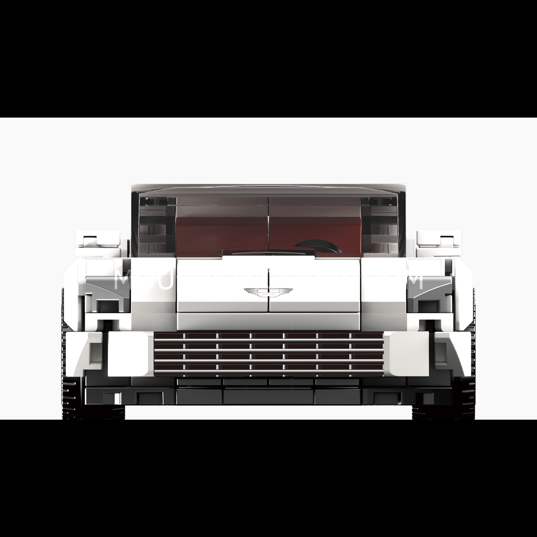 The clean pearl-white finish, dark red interior, and signature front grille express understated elegance, while the C-shaped taillights complete the authentic rear profile.