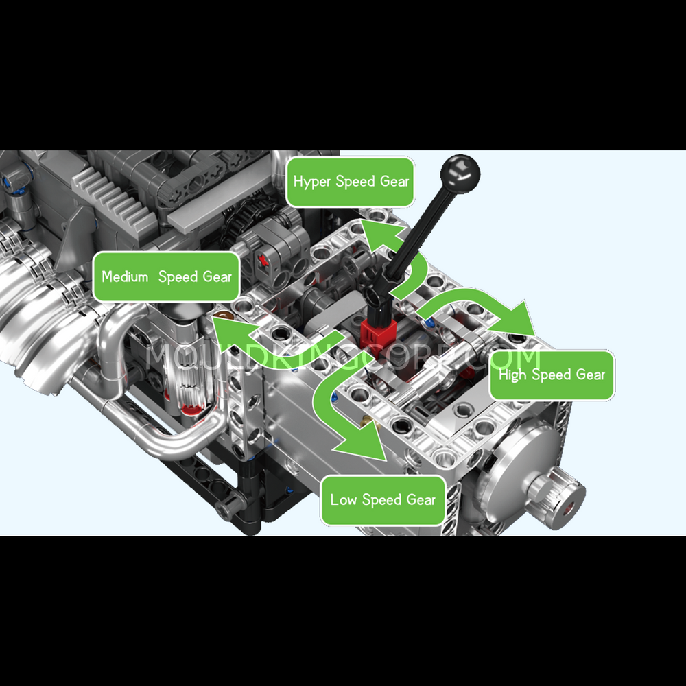 - 4-speed gearbox (Low, Medium, High, Hyper)