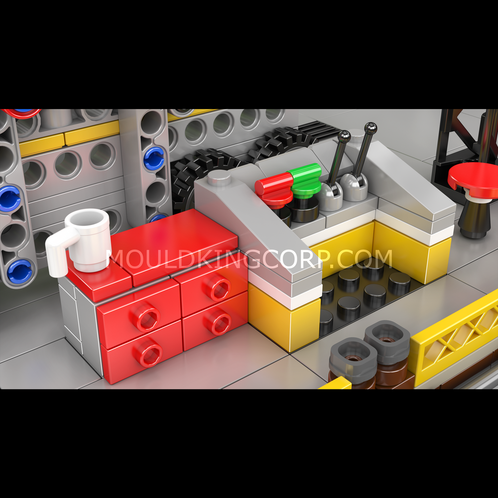 De 1273-delige set recreëert een functionele werfscène met kraantorens, een servicekantoor en een bootliftstation.
