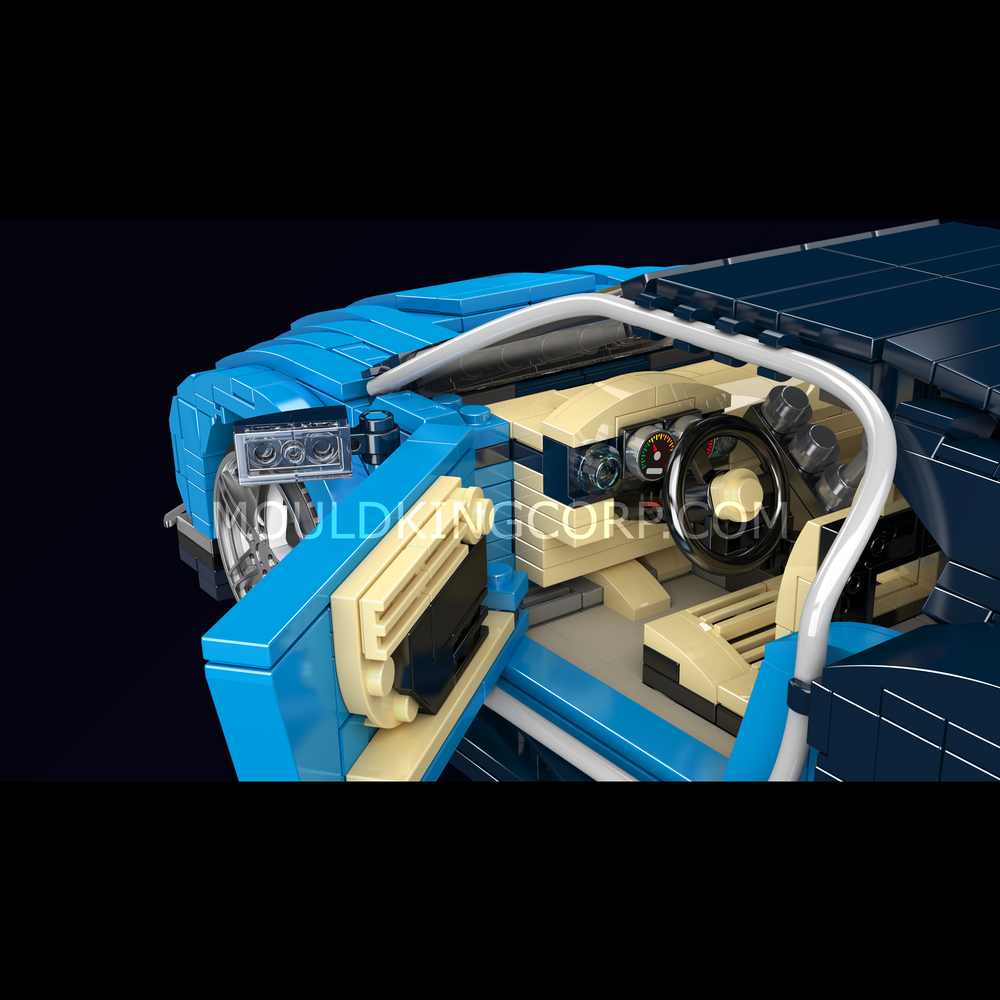 De schaardeuren openen naar boven en onthullen een luxueuze cockpit, compleet met een authentiek dashboard en racestoelen. De achtervleugel, die verstelbaar is, draagt bij aan de dynamische houding van het model en benadrukt het prestatiegerichte ontwerp.