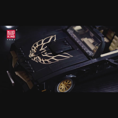 Bouw een klassieke Amerikaanse muscle car uit het gouden tijdperk. Deze cabriolet op schaal 1:16 heeft een gestroomlijnde zwarte styling met gouden accenten en agressieve details aan de voorkant.
