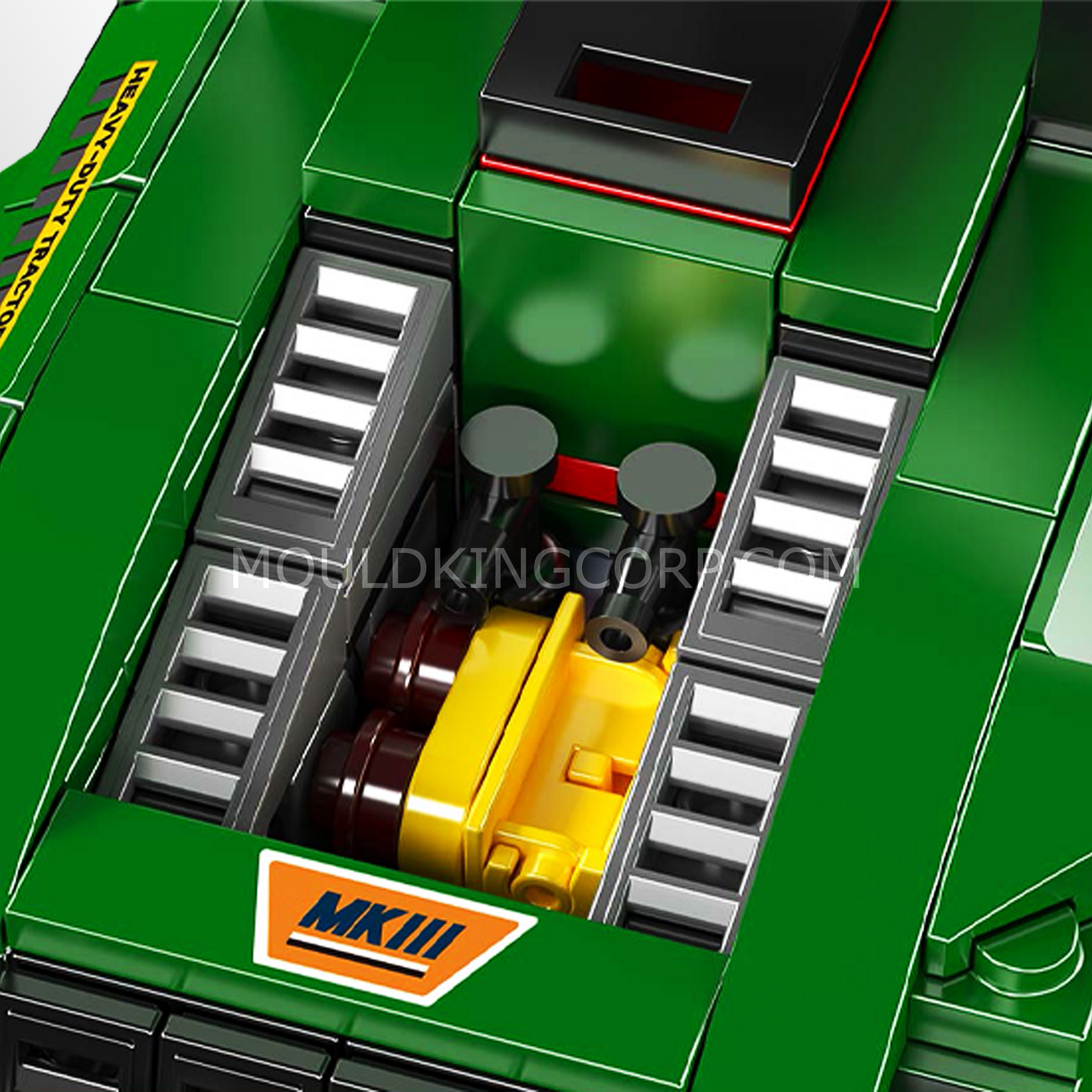 Mould King 24061 is een compact en gedetailleerd landbouwtractormodel opgebouwd uit 466 onderdelen.