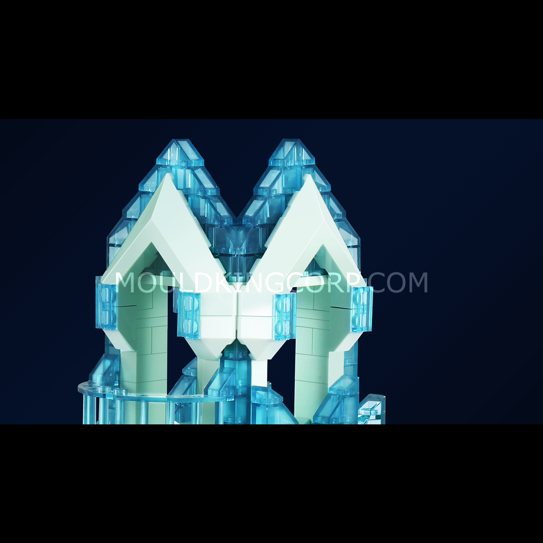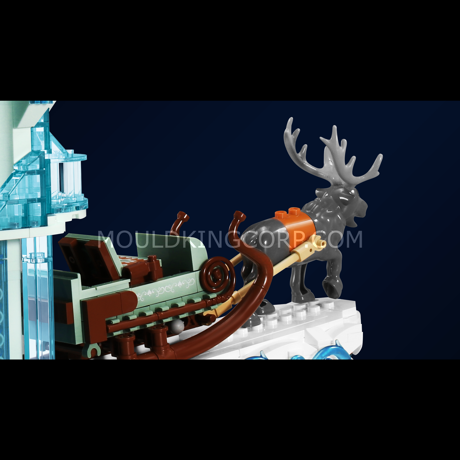 The design features a crystal-style castle structure built with transparent blue elements that reflect the look of ice and frozen light.